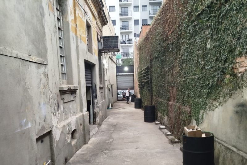 O espaço é parte de uma antiga construção e inicia em um largo corredor com tijolos antigos aparente e parede verde, o que traz uma grande gama de possibilidades para a entrada em eventos e filmagem.